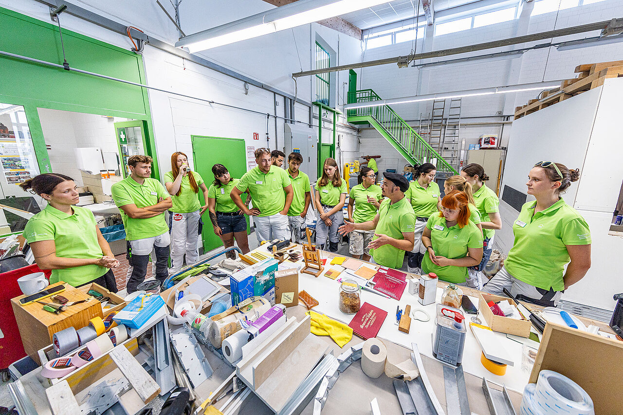 Morgens in der Werkstatt, nachmittags auf Exkursion: Das Seminar-Programm verbindet Theorie und Praxis. Es beleuchtet historische und moderne Metallbeschichtungstechniken, stellt aber auch die kunstvollen Facetten des Malerberufs sowie deren Mehrwert für Kultur und Gesellschaft in den Mittelpunkt.