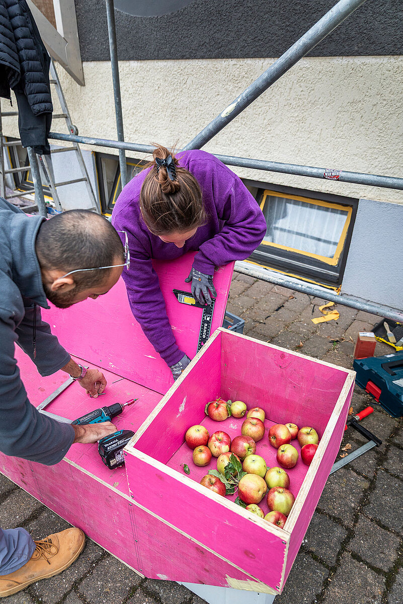 Die Bauhütte SNDHSN ist ein Hands-on-Workshops für Architektur-Studierende sowie Gesellinnen und Gesellen, Meister-Schülerinnen und -Schüler des Ausbaugewerbes. Sie ist ein Experiment gelebter Zusammenarbeit. Ralf Pasel, Professor für Architektur an der TU Berlin und Stiftungsrat Architektur bei der Sto-Stiftung, sagt: „Hier bringen wir Lehre, Praxis und Forschung zusammen. Wir untersuchen, wie beide Gruppen, also Planung und Ausführung, am Bau voneinander profitieren können.“ Dabei entstanden in der diesjährigen Kooperation nicht nur handfeste Ergebnisse wie eine Terrasse aus recyceltem Terrazzo und eine überdachte Bushaltestelle, sondern auch ein neues Miteinander.